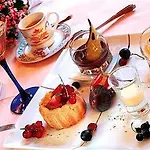 تشمل خيارات تناول الطعام اليومية وجبة الفطور مع البوفيه. تتميّز القائمة في مطعم Le Relais Champenois بالأطباق Franse.